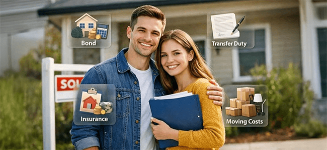 Include bond instalments, municipal rates and taxes, levy payments (if you buy in a sectional title or HOA), utility charges, insurance premiums for the property and the contents, and so on.